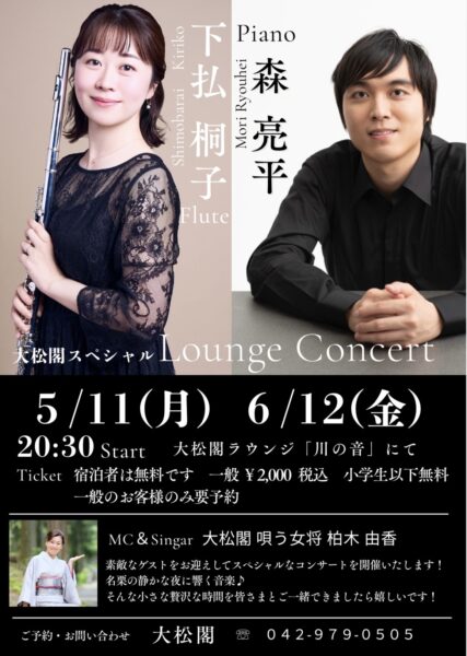 現在、週に1度開催しております女将のラウンジコンサートですが、